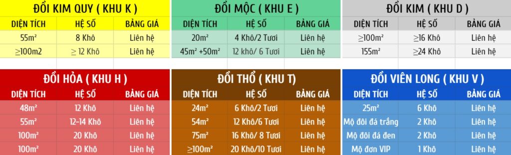 Với mức giá ưu đãi chỉ từ 15tr/phần mộ. Hình thức an táng Chôn tươi (một lần, không bốc), Mộ khô (hỏa táng hoặc cải táng).
