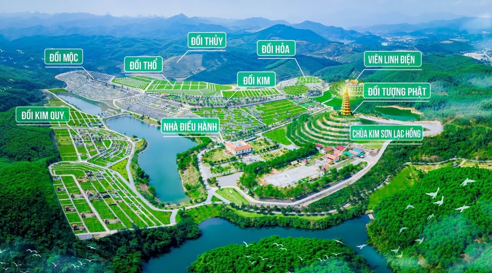Được chọn lựa rất kỹ dựa trên những phân tích tâm linh và khoa học của các Nhà Phong Thủy, Địa lý Việt Nam, Đài Loan và Trung Quốc. Công viên nghĩa trang Lạc Hồng Viên nằm trên vị trí hội tụ đủ Tứ Linh: Long – Ly – Quy – Phượng. 9 quả đồi mang hình dáng một con rùa khổng lồ đang bơi cùng 9 con suối tự nhiên tượng trưng cho một đời người khi trở về nơi 9 suối. Công viên nghĩa trang Lạc Hồng Viên có thế Long Chầu – Hổ Phục, Phong Thủy tuyệt vời, tạo nên một khung cảnh huyền ảo, nên thơ và trữ tình, mang dáng dấp một nơi An nghỉ Thiên thu vĩnh hằng, một nơi Linh thiêng Cửu Tuyền Chín Suối.